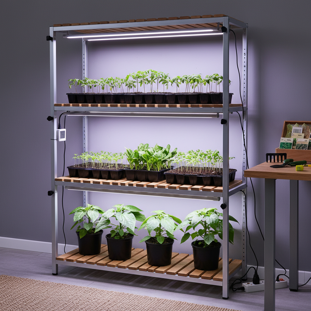 Combine shelving with technology by incorporating adjustable height grow light shelves. These units allow you to precisely control light exposure for seedlings and young plants, ensuring optimal growth. The adjustable height ensures the lights are always at the perfect distance.
