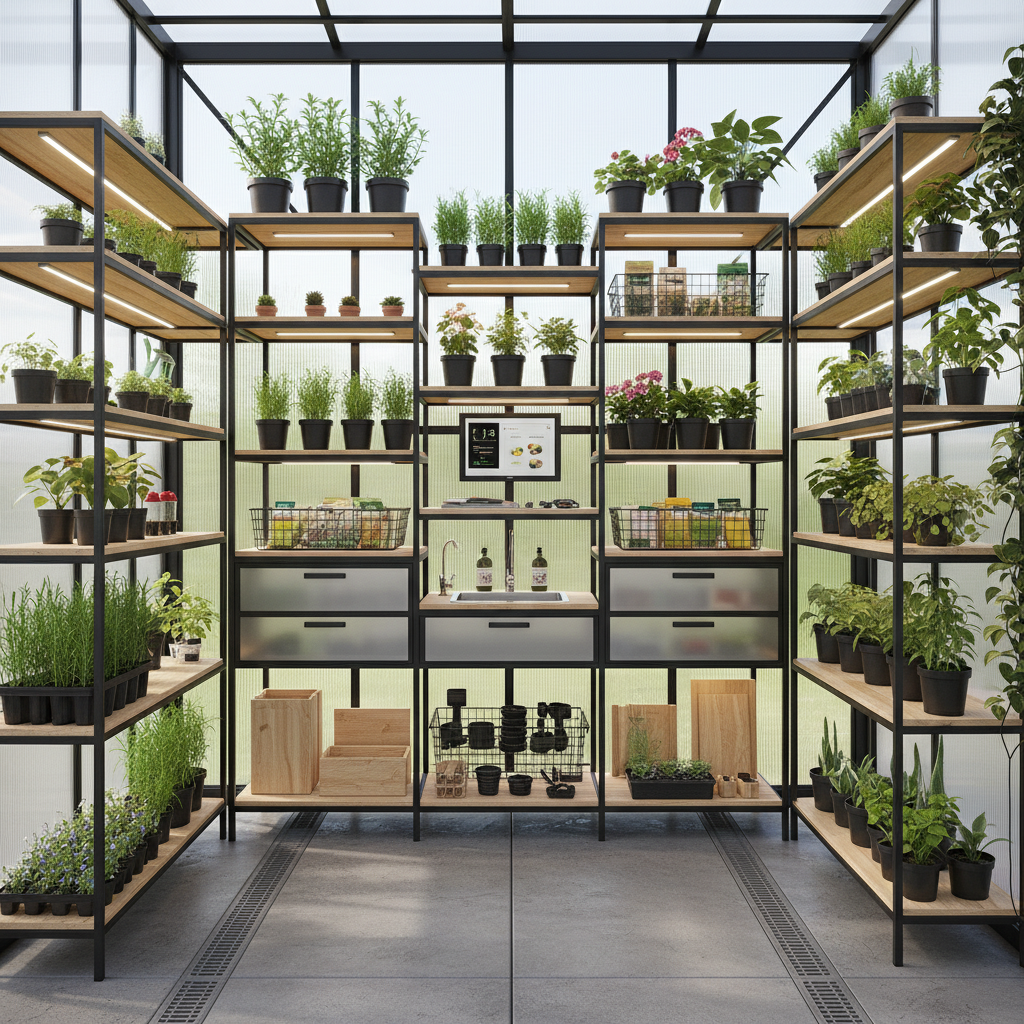 For a truly bespoke and integrated look, consider built-in custom shelving. Designed to fit the exact dimensions and style of your greenhouse, these shelves offer maximum space utilization and a polished, high-end finish. They can be tailored to specific plant collections.