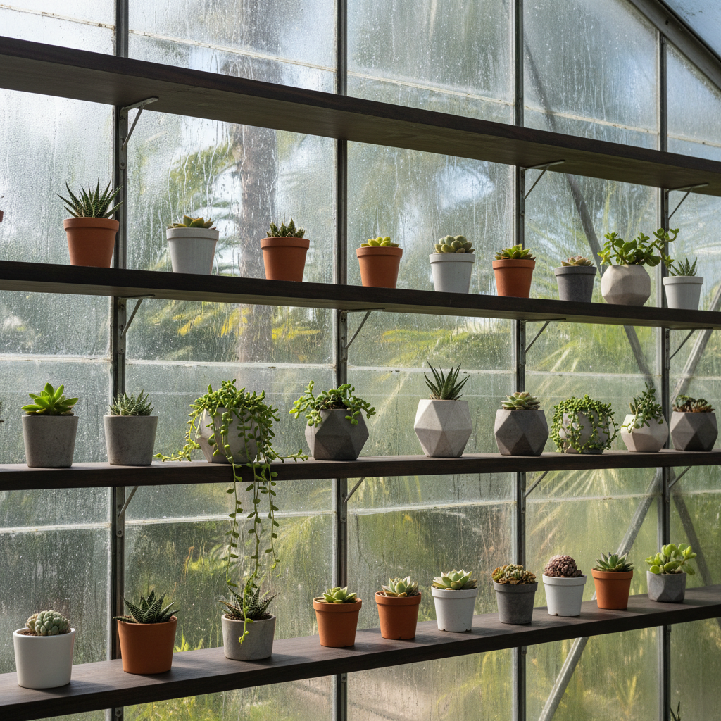 If your greenhouse doubles as a display area, glass shelves add a touch of elegance and sophistication. They are perfect for showcasing ornamental plants, terrariums, or propagation experiments, allowing light to pass through for a luminous effect.