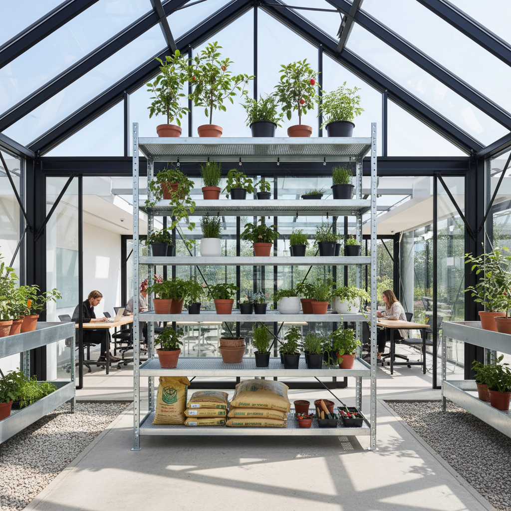 Achieve a sleek, industrial look with galvanized steel shelving. This material is highly resistant to rust and corrosion, making it perfect for the humid greenhouse environment. Its robust, utilitarian appearance adds a contemporary edge while offering superb durability.