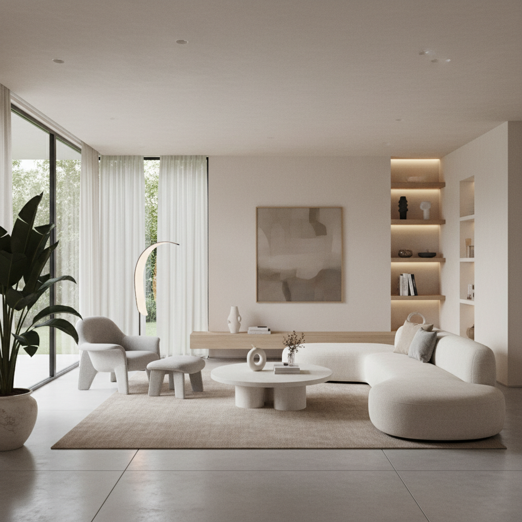 Grandeur can also be found in understated elegance. Modern Minimalist Luxury focuses on clean lines, open spaces, and a curated selection of high-quality pieces. The color palette is typically serene, consisting of warm whites, soft grays, and earthy tones, with occasional muted accents. Materials are tactile and refined—think natural oak, smooth concrete, linen, cashmere, and subtle metallic finishes. Furniture silhouettes are sculptural and functional, prioritizing comfort and impeccable craftsmanship. The mood is one of tranquil sophistication, where every element serves a purpose and contributes to a sense of calm opulence.