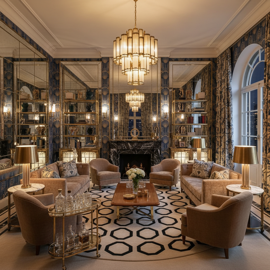 Step into a world of dazzling sophistication with Art Deco Glamour. This style is defined by bold geometric patterns, luxurious materials, and a sense of theatrical flair. Think high-contrast color schemes—black and white, deep emerald green with gold, or sapphire blue with silver. Materials like polished chrome, brass, lacquered wood, and mirrored surfaces are key, often paired with exotic animal prints or rich, jewel-toned velvets. Furniture features sleek, streamlined forms, often with rounded edges and intricate inlays. The atmosphere is one of undeniable luxury, confidence, and a touch of vintage allure.