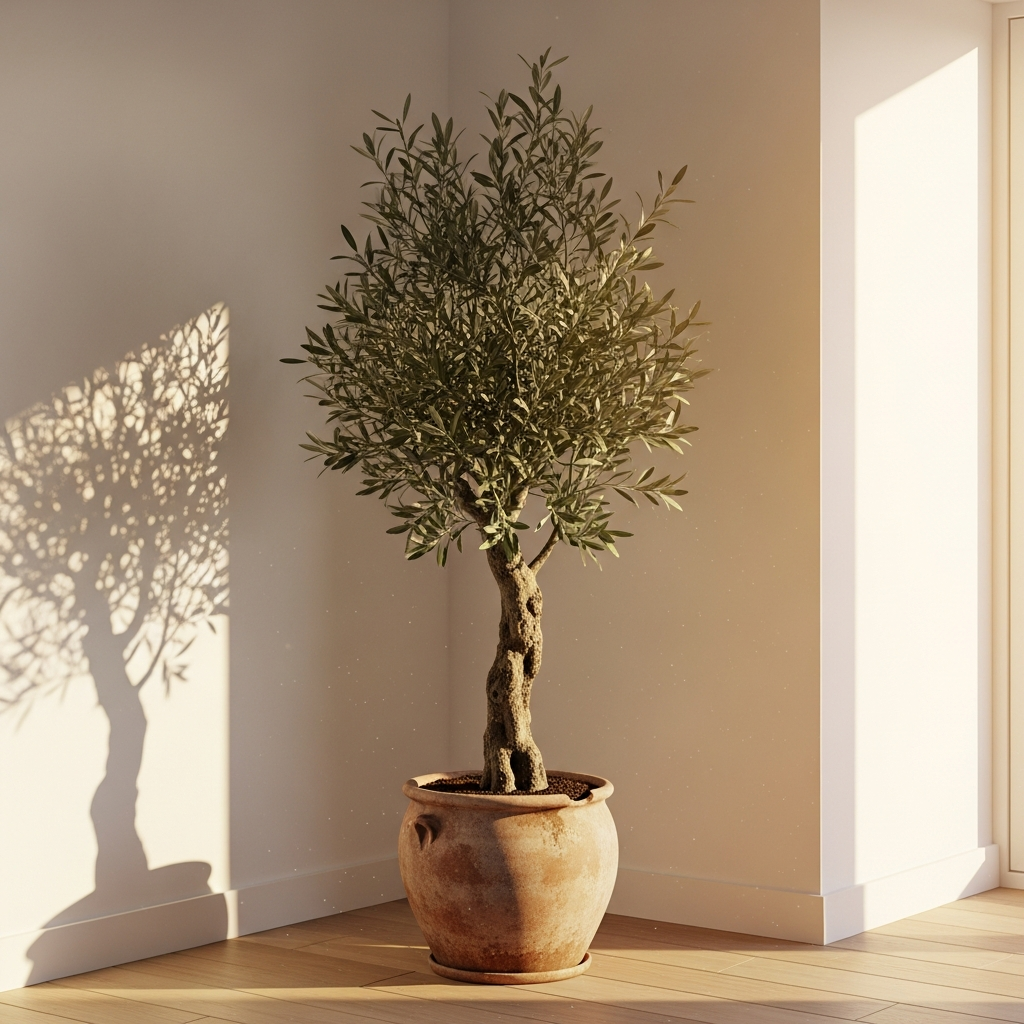 While small succulents are popular, large indoor trees like the Fiddle Leaf Fig or Olive Tree provide a dramatic vertical element that anchors a room and brings the freshness of the outdoors inside.