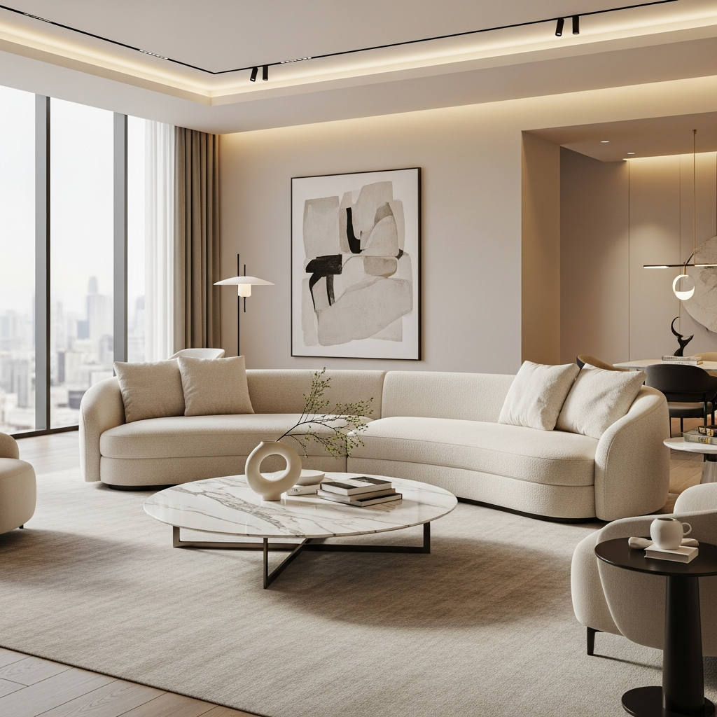 Soft, rounded edges are replacing sharp geometric lines in modern furniture design. Curved sofas and circular dining tables offer a sense of flow and comfort, making spaces feel more inviting and less rigid.