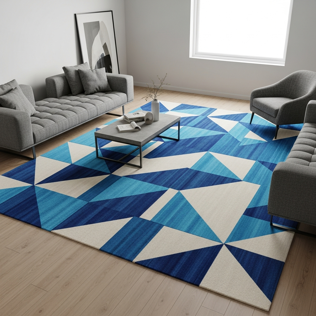 Rugs act as the foundation of a room’s design. Bold geometric patterns or oversized traditional motifs can anchor a seating area and introduce color into an otherwise neutral space.