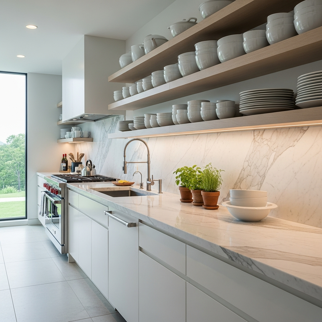 Open shelving in kitchens and living areas allows for both storage and display. It creates an airy feel and provides an opportunity to showcase beautiful dishware or curated book collections.
