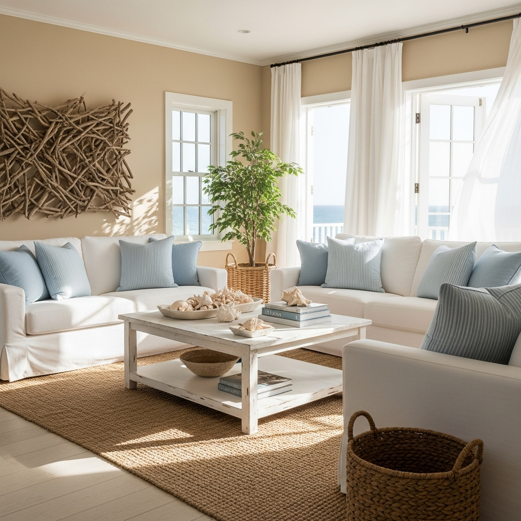 This trend focuses on classic, comfortable, and breezy interiors. Think white linens, light blue accents, and nautical elements that evoke the feeling of a sophisticated seaside cottage.