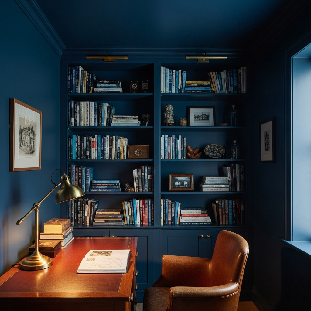 Inspired by old libraries and classic literature, this trend uses dark wood, leather, and deep colors like burgundy and forest green to create a moody, intellectual environment.