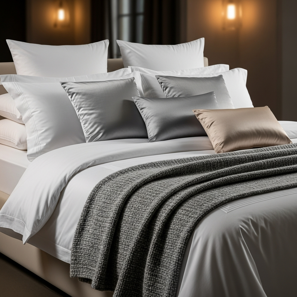 Elevate your bedroom by layering different fabrics and weights. Combine a crisp duvet with a textured quilt and various throw pillows to create a hotel-quality look and feel.