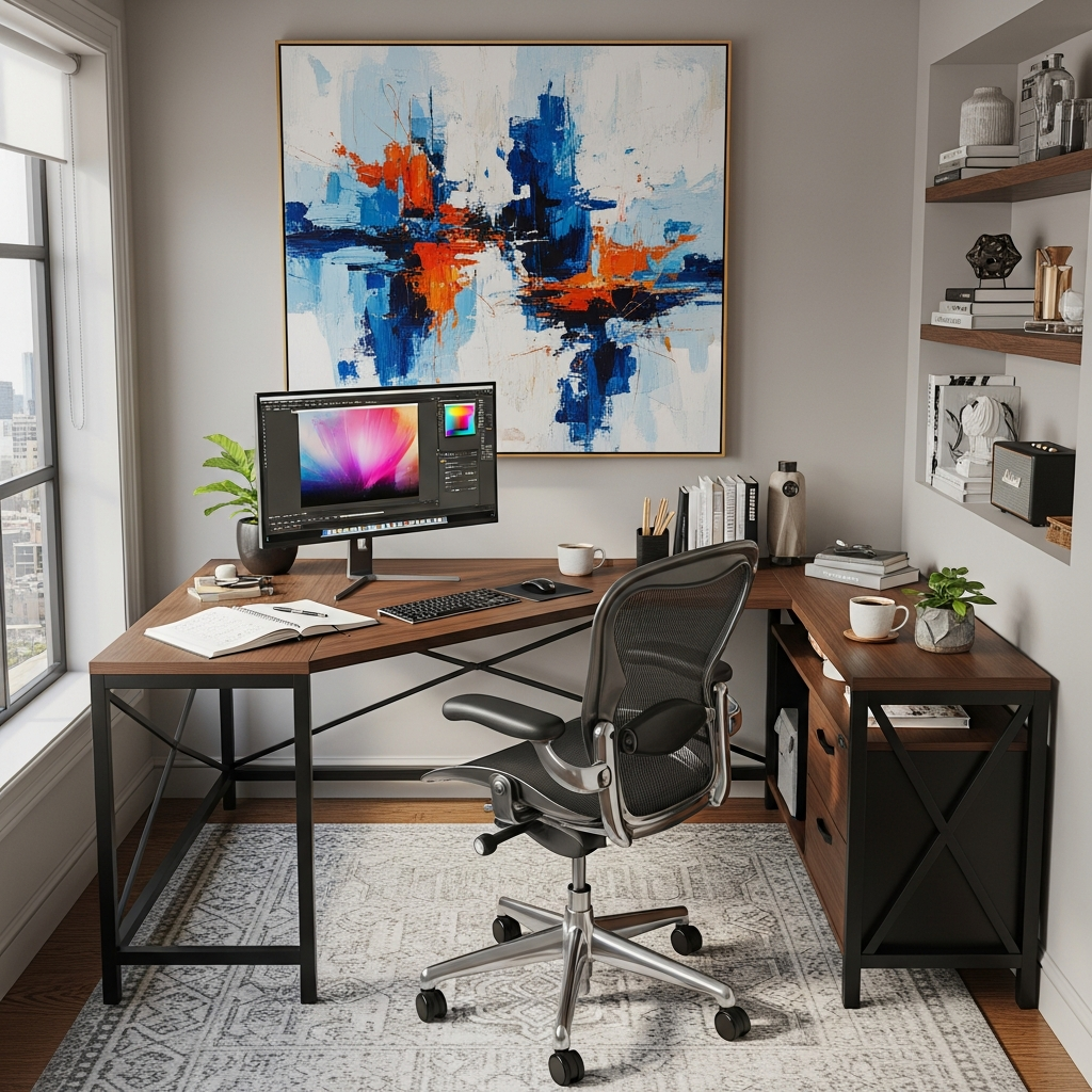 A home office should reflect your professional personality. Use personalized decor, inspiring art, and a color scheme that boosts your productivity and creativity.