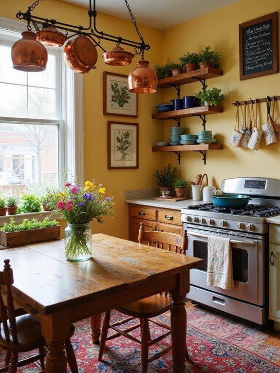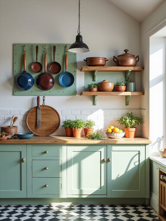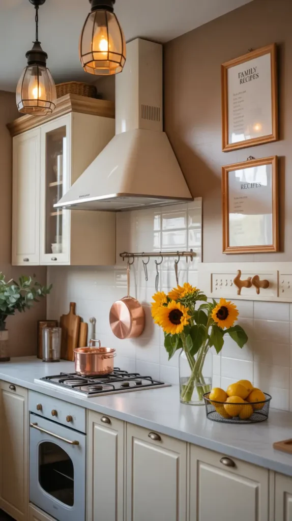 Hang copper pans or display unique kitchen tools as decor.