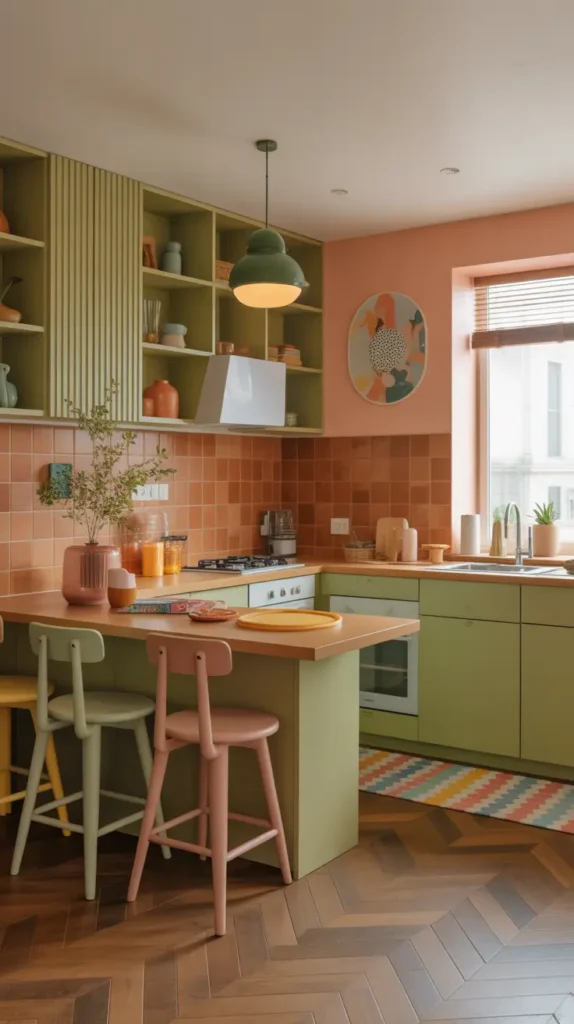 Soft pink, mint, or powder blue appliances give retro charm.