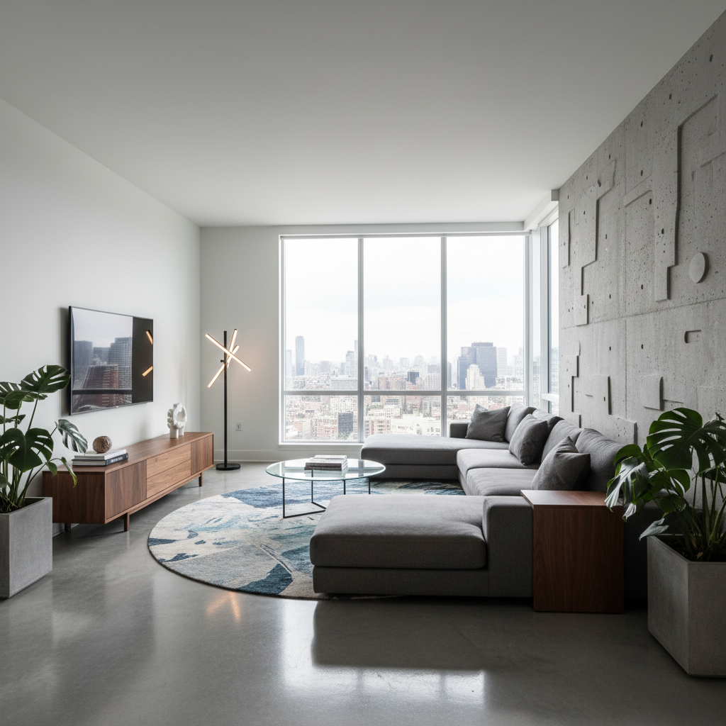 Introduce the raw honesty of concrete through floors, accent walls, or even a sleek coffee table. Its cool, neutral grey provides a strong foundation, allowing other textures like soft textiles or warm wood to truly pop, establishing a grounded and sophisticated mood.