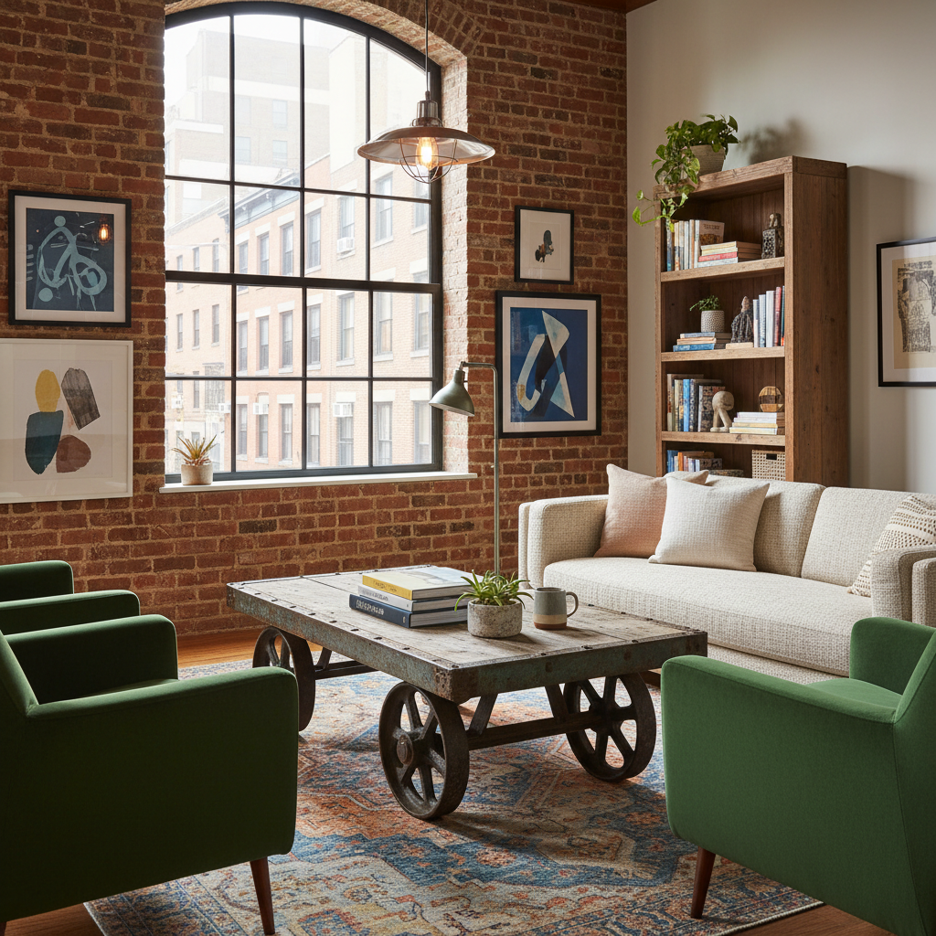Incorporate vintage industrial carts, lockers, or workbenches as unique furniture pieces. These items bring character and a sense of history, often featuring distressed metal, casters, and practical storage, enhancing the authentic industrial vibe.