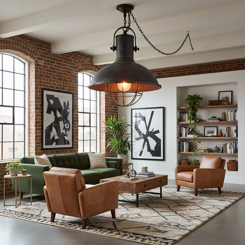 Lighting is key in industrial spaces. Think oversized factory pendants, caged sconces, or bare Edison bulbs. These fixtures, often in black metal or aged brass, serve as functional art, casting a warm, atmospheric glow that softens the hard edges of the design.