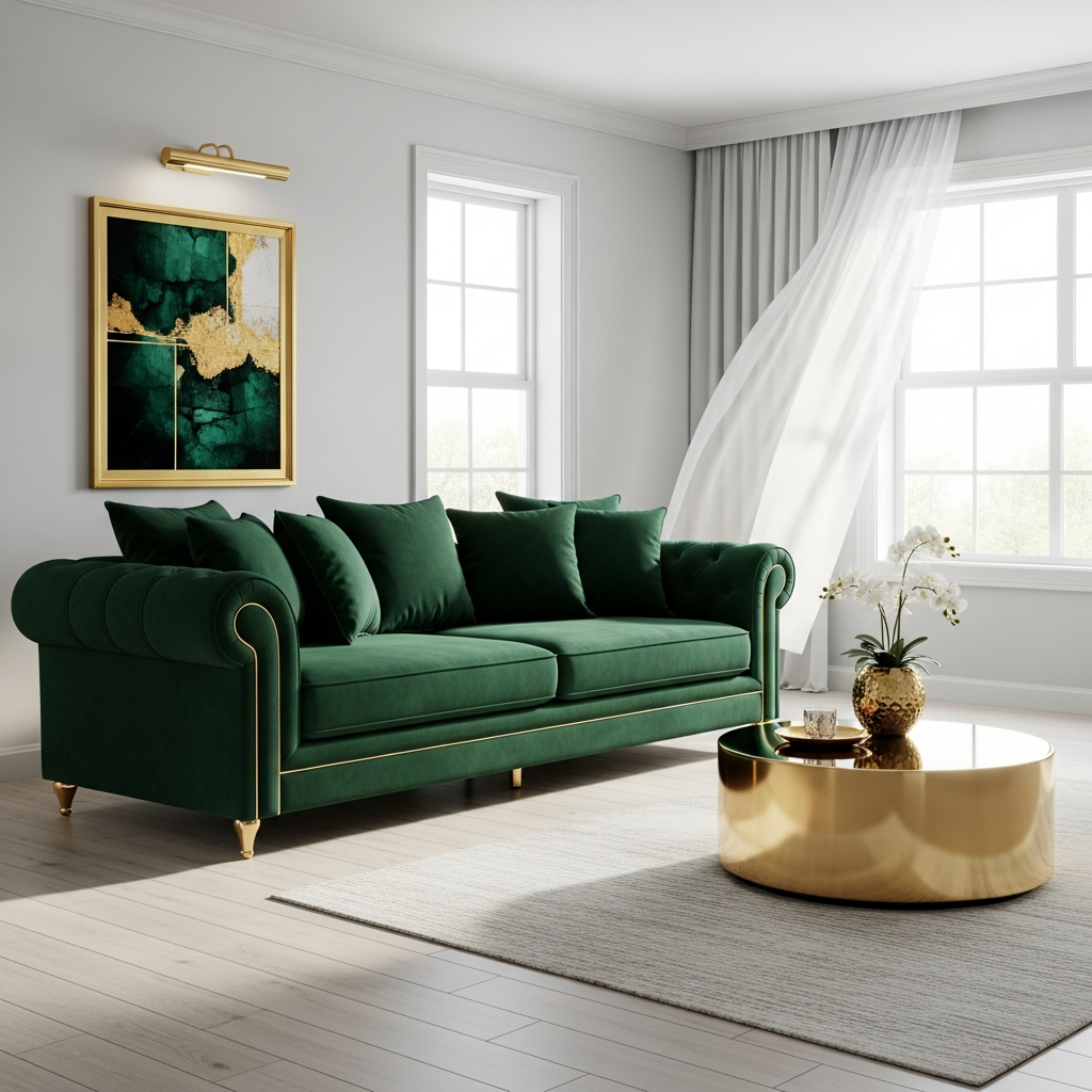 A velvet sofa serves as an immediate focal point, offering a sense of luxury and tactile depth. Available in rich jewel tones or soft pastels, this piece provides both comfort and a sophisticated sheen that complements various interior styles, from traditional to contemporary.