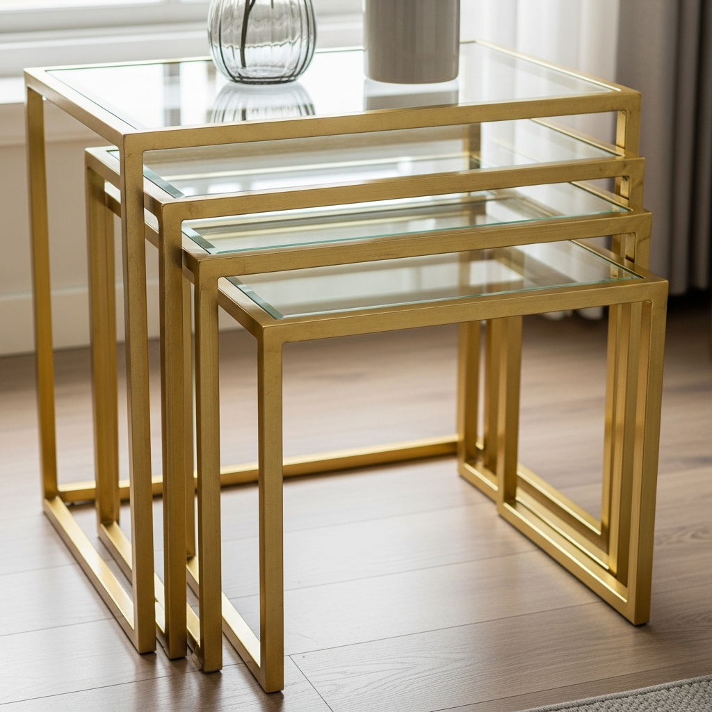 Nesting tables are a practical solution for smaller living rooms. They can be tucked away when not in use and pulled out to provide extra surface area during gatherings, making them a highly flexible furniture choice.