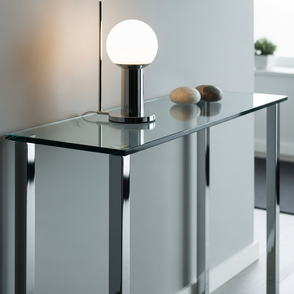 A glass console table is perfect for narrow hallways or behind a sofa. Its transparency maintains visual flow, allowing the surrounding decor to shine while providing a sophisticated surface for lighting and accessories.