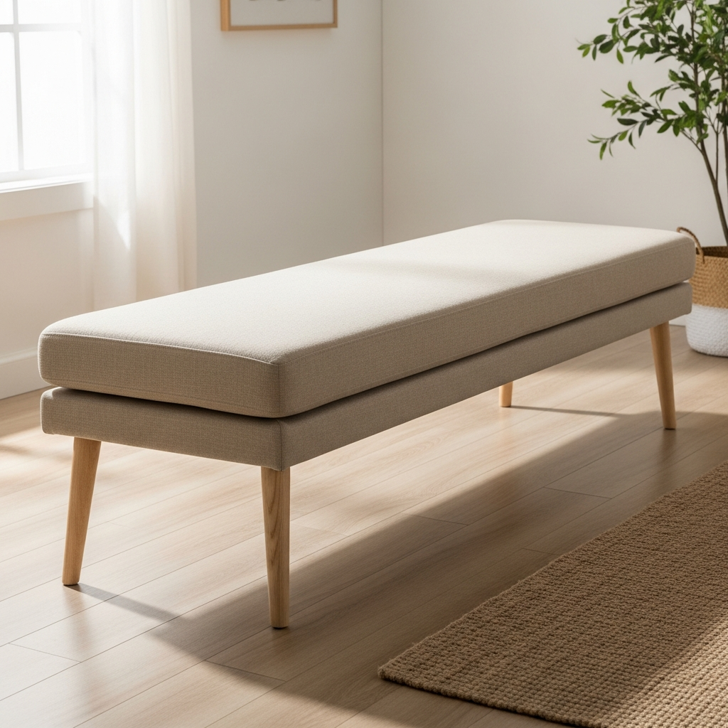 Benches are versatile pieces that can be placed against walls or under windows. An upholstered bench adds a layer of softness and provides a convenient spot for guests to sit or to place decorative pillows.
