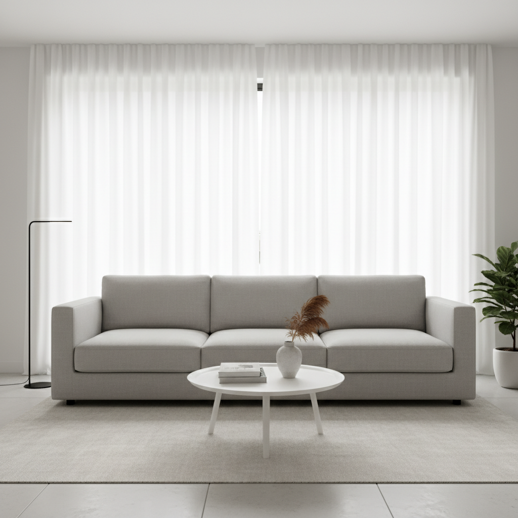 Cultivate a sense of calm and openness with a light and airy design. A pale grey sofa feels fresh against white or very light neutral walls. Maximize natural light with sheer curtains, add delicate glass accents, and incorporate soft, flowing fabrics for a tranquil, expansive feel.