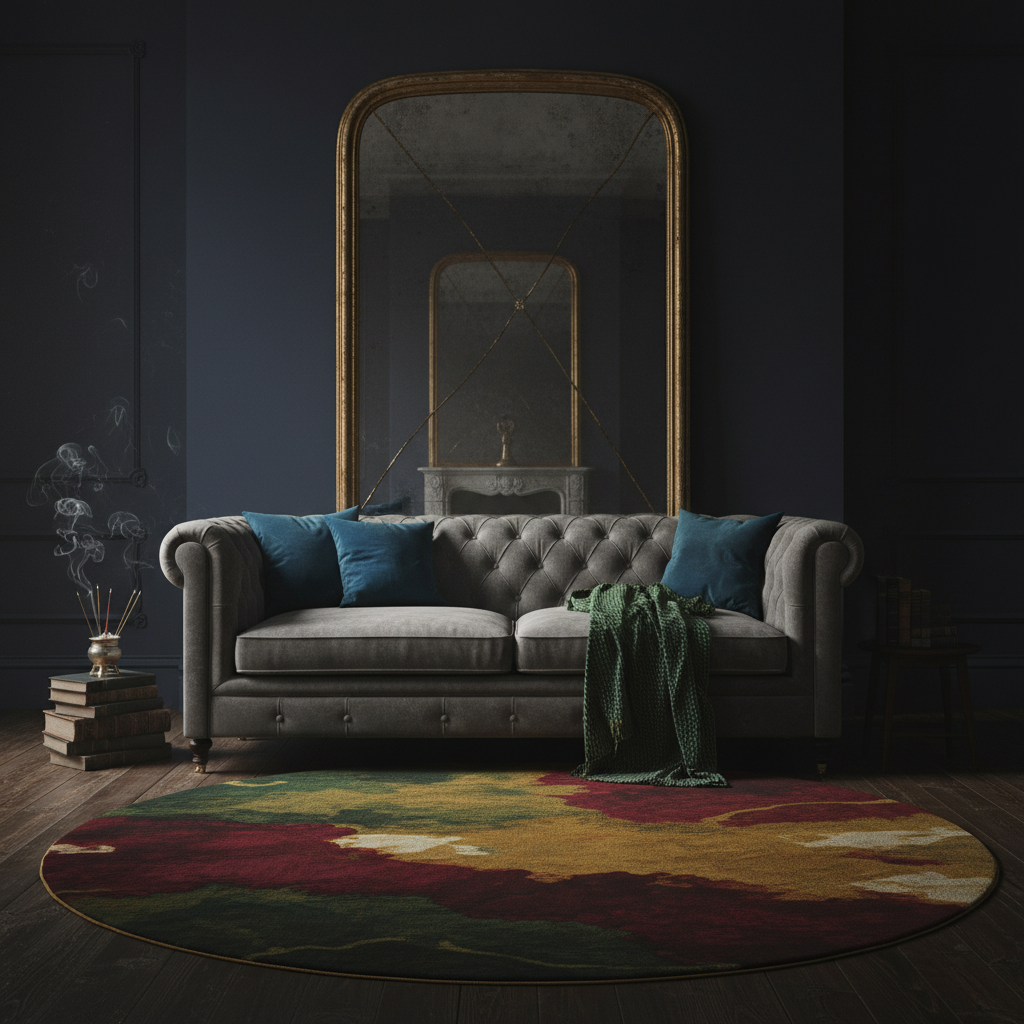 Embrace drama with a dark and moody aesthetic. A charcoal grey sofa sets the stage for deep jewel-toned walls—think navy, forest green, or even black. Layer with rich textures like velvet and faux fur, and use warm, dim lighting to create an intimate, sophisticated sanctuary.