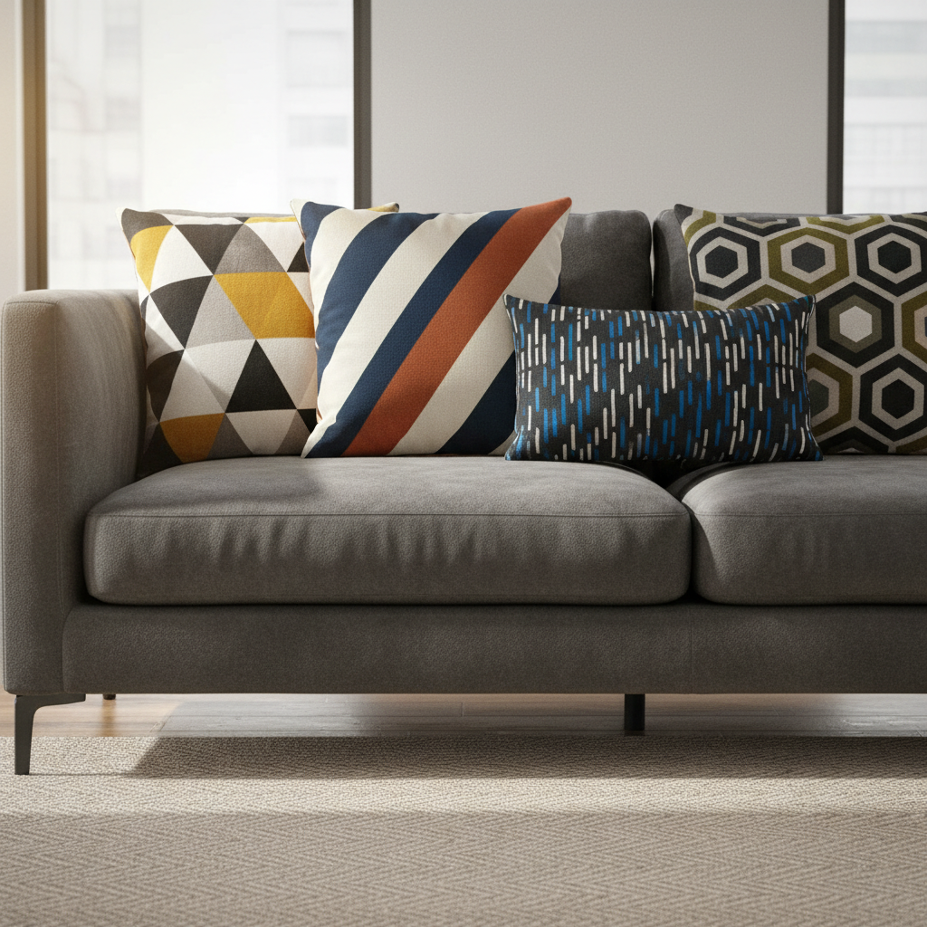 Introduce visual interest and contemporary flair with geometric patterns. Cushions, rugs, or artwork featuring bold lines, triangles, or hexagons can invigorate a grey sofa. Stick to a cohesive color palette within the patterns to maintain a sophisticated, modern look.