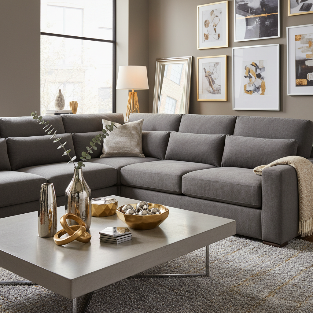 Add a touch of glamour with strategic metallic accents. Gold, silver, or rose gold in lamps, decorative objects, or picture frames can instantly elevate a grey sofa. The reflective surfaces catch the light, adding sparkle and a luxurious, polished finish to the room.