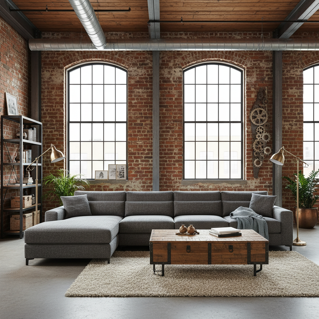 Pair your grey sofa with raw, urban elements for an industrial-chic aesthetic. Think exposed brick walls, black metal shelving, and concrete finishes. Leather accents and vintage-inspired lighting complete this edgy yet sophisticated look, creating a living room with character.