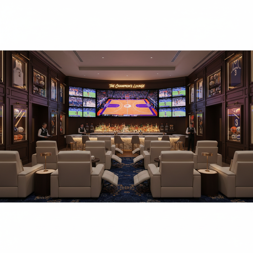 This space is designed for the ultimate fan, but with an elevated touch. A palette of team colors can be subtly integrated, balanced by sophisticated neutrals like charcoal or deep blue. Plush seating in performance fabrics, polished wood, and subtle sports memorabilia create a refined atmosphere. Large, integrated screens and a high-quality sound system are essential. The mood is exhilarating and communal, yet undeniably upscale.