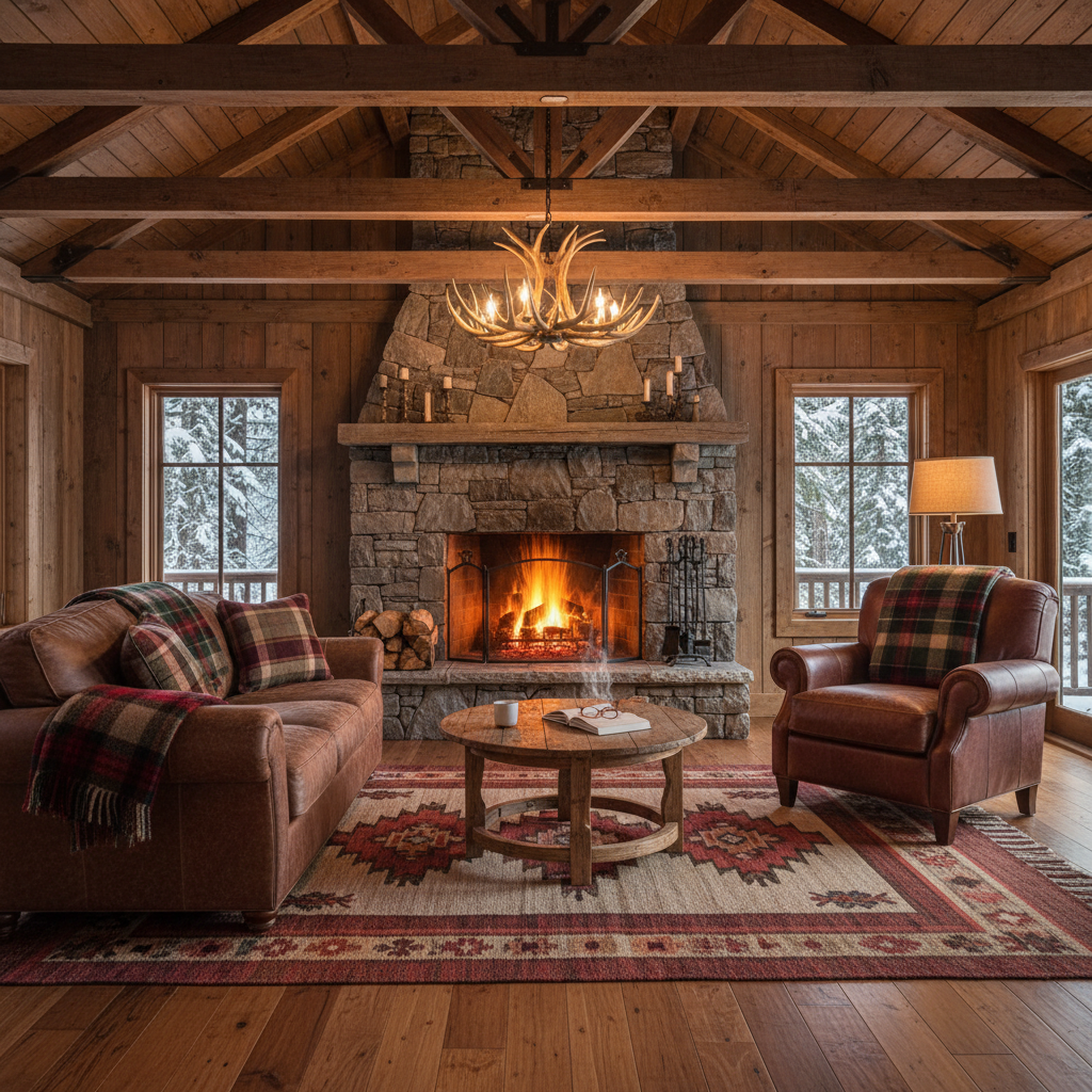 Drawing inspiration from nature, this design features warm earth tones—deep browns, forest greens, and burnt oranges. Natural wood, stone, and cozy textiles like wool and flannel are central. Furniture is robust and comfortable, often featuring handcrafted details. A grand stone fireplace is a focal point. The mood is one of warmth, escape, and serene tranquility, a perfect retreat from the everyday.