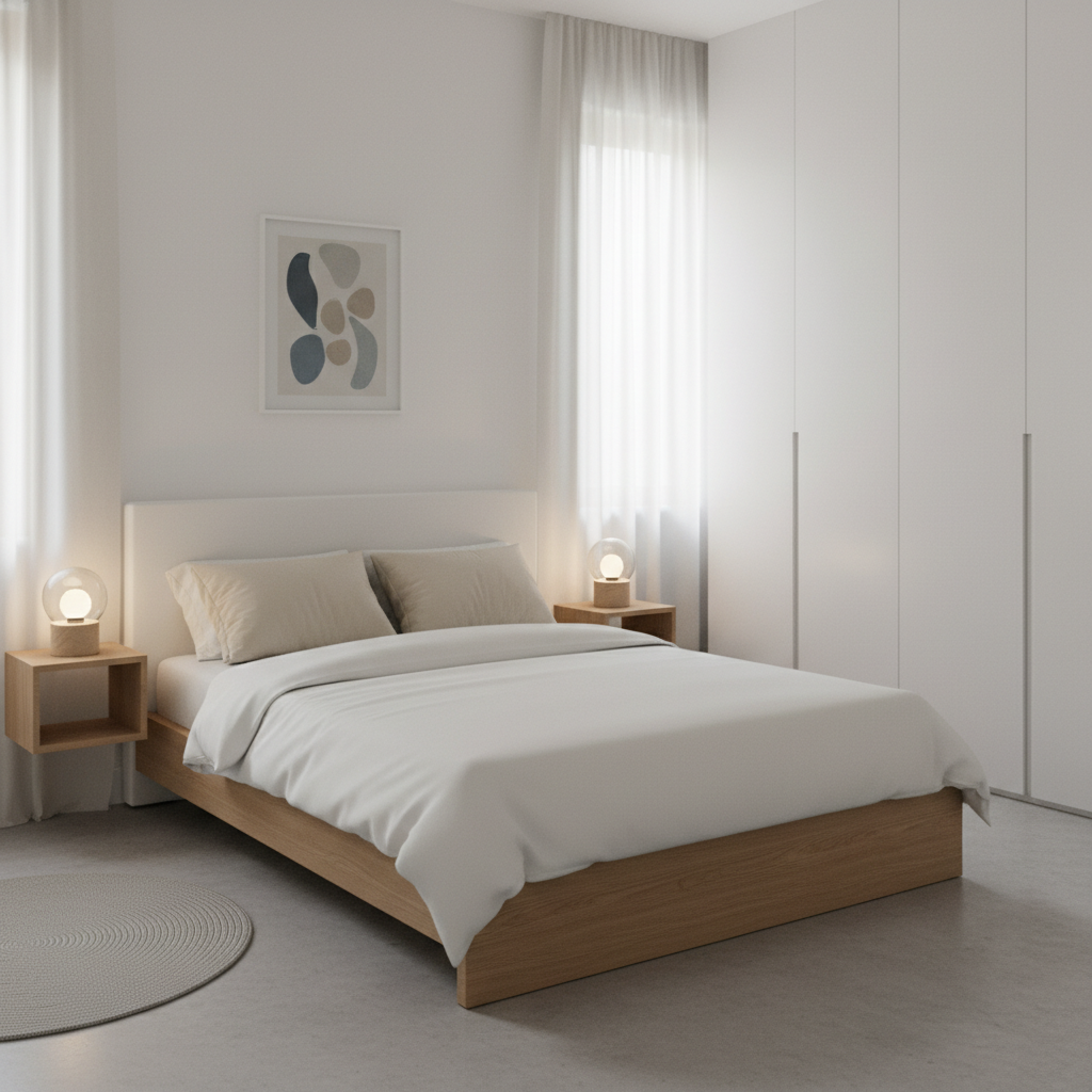 Embrace the beauty of natural materials. Wood, linen, cotton, wool, ceramic, and stone add an organic warmth and tactile richness that complements a minimalist design beautifully. Light-toned woods for furniture, soft linen bedding, and perhaps a marble or concrete accent piece can elevate the space with understated luxury and texture.