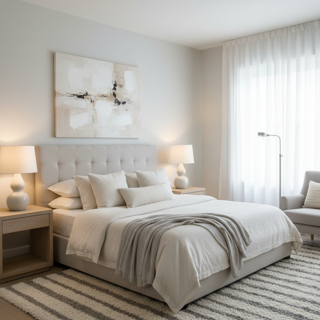 Minimalism doesn’t mean a lack of personality. Instead, it encourages thoughtful curation. Choose one or two impactful pieces of art or decor that resonate with you. A large, abstract piece above the bed, a sculptural vase on a nightstand, or a unique ceramic piece can add character without overwhelming the space. Let each item breathe.