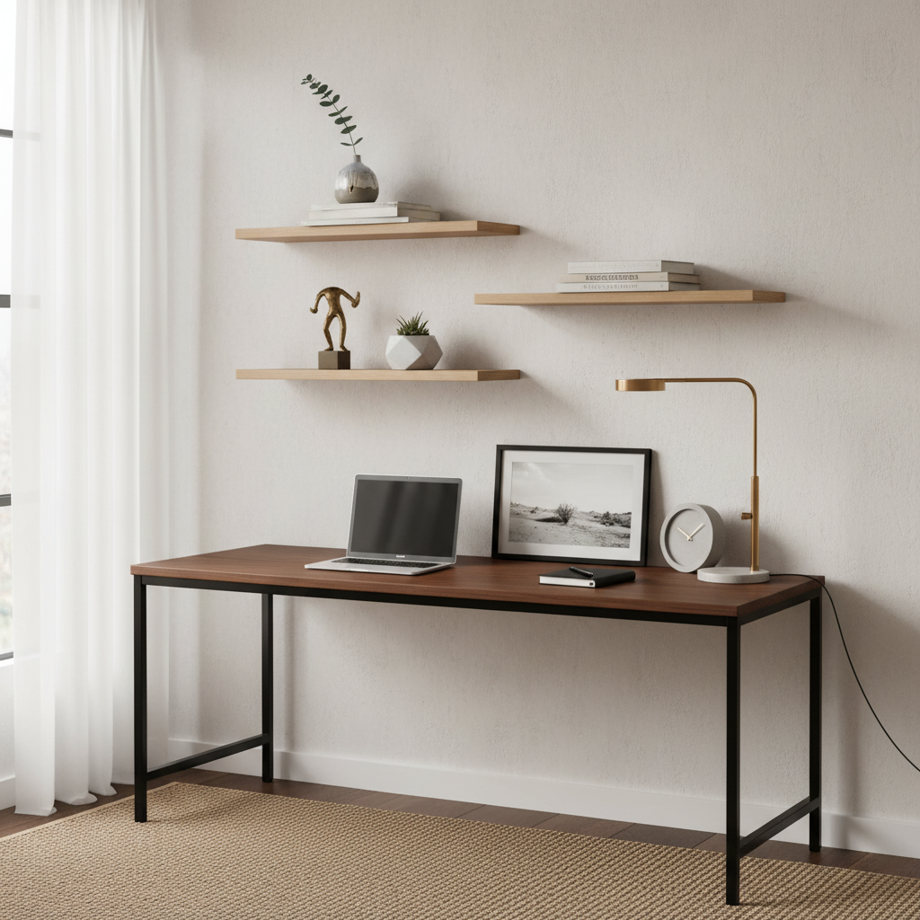 Keep your nightstands and other surfaces as clear as possible. Limit items to absolute essentials like a simple lamp, a good book, and perhaps a small glass of water. Floating shelves can also serve as streamlined alternatives to traditional nightstands, keeping the floor space clear and enhancing the airy feel of the room.