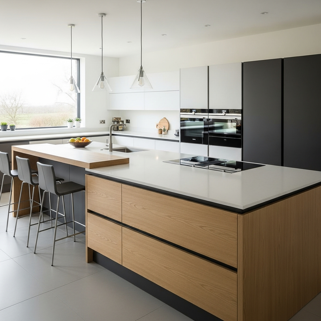 Warm wood tones, from light oak to rich walnut, are typically the stars, often paired with sleek dark countertops or minimalist white cabinetry. The natural grain of the wood adds another layer of texture. This creates a serene, organic, and inviting atmosphere with a strong contemporary edge.