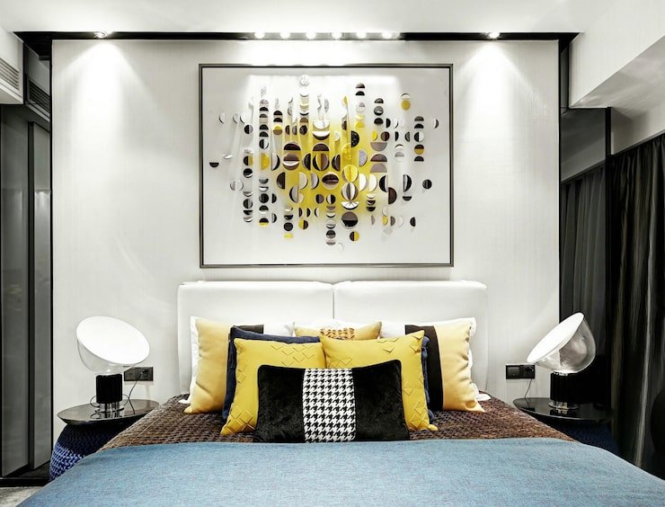 Modern bedrooms often feature bold or abstract art. Choose one statement piece above your bed or create a small gallery wall for visual interest.