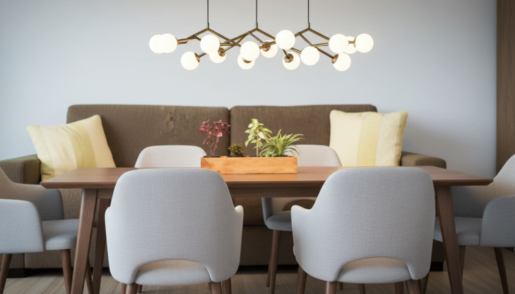 Lighting can completely transform a dining room — and in modern design, it often becomes a statement piece.