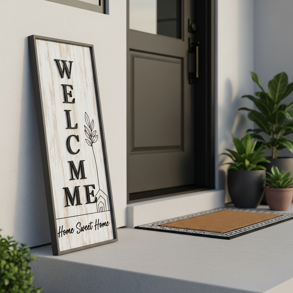 Move beyond generic “Welcome” signs. Create a modern version using a piece of reclaimed wood or a small acrylic panel. Use stencils or vinyl decals for crisp, clean lettering in a modern font. Phrases like “Hello,” “Welcome Home,” or just your house number can be impactful. A simple frame or a hanging rope adds to the charm, allowing you to personalize the entry with a touch of contemporary warmth.