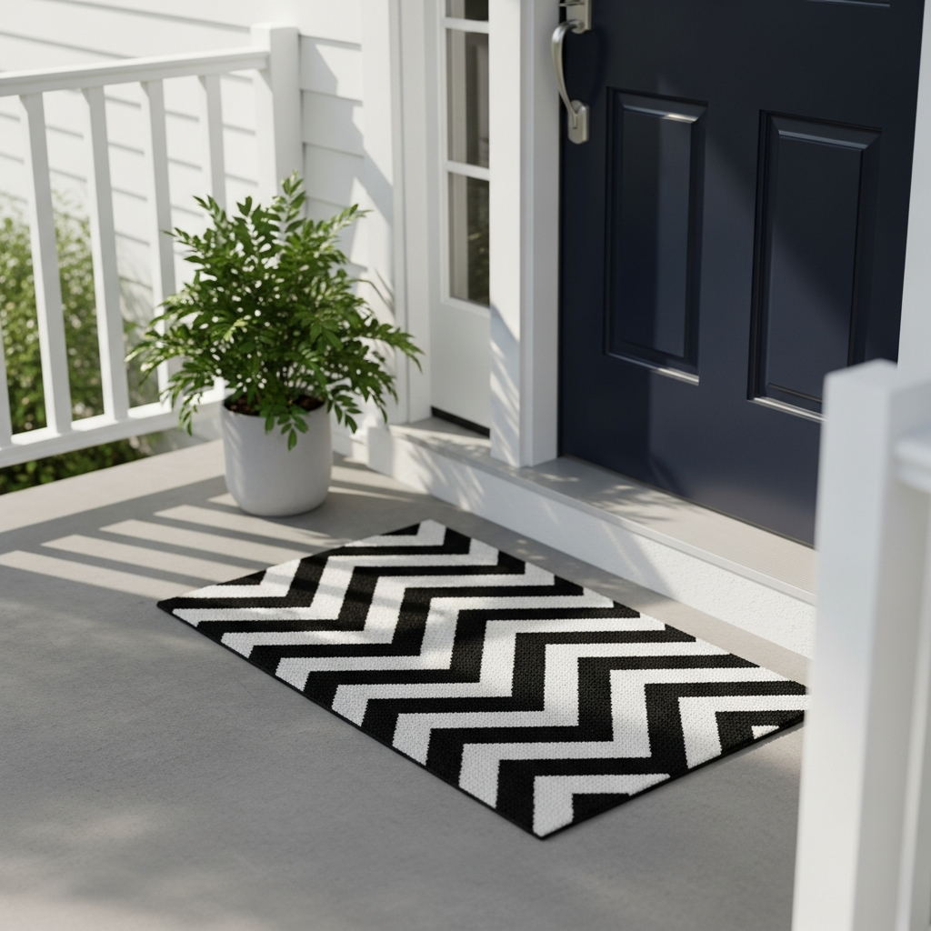 A doormat is an essential porch item, but it doesn’t have to be boring. Choose one with a bold, graphic pattern or a simple geometric design. Think stripes, chevrons, or abstract shapes in contrasting colors like black and white, or deep grey and cream. These mats instantly add a touch of modern flair and define the entry space without a big investment. The texture of coir or woven plastic also adds a subtle, natural element.