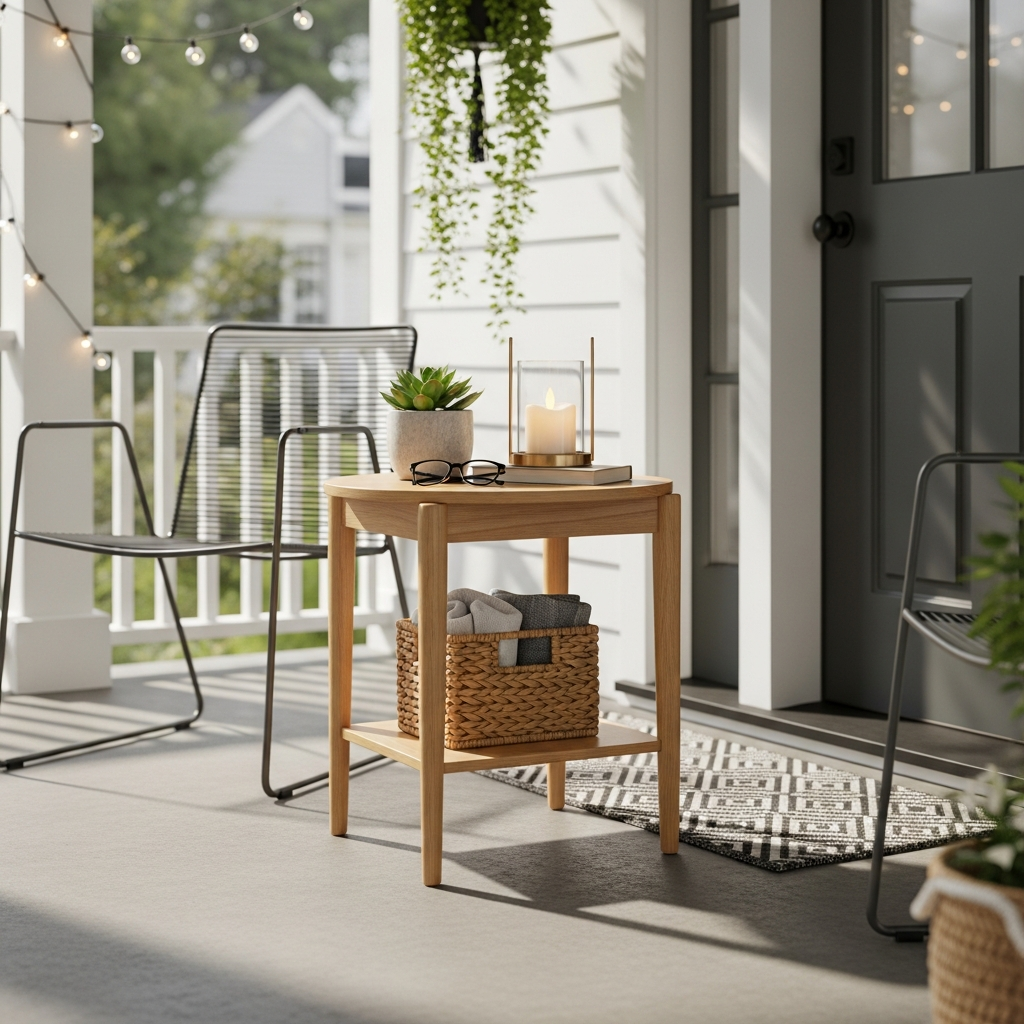 A small, functional table can add a touch of modern utility to your porch. Look for compact designs with metal bases, clean wood tops, or even an upcycled garden stool. It provides a spot for a cup of coffee, a small plant, or a book. A black metal frame with a slatted wood top, or a simple round concrete-look table, can provide that modern, minimalist touch without taking up too much space or money.