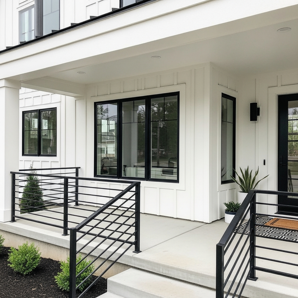 Incorporating black accents is a hallmark of modern design. Consider painting window frames, door trim, or porch railings in a matte black finish. This creates a sharp contrast against neutral siding and provides a crisp, sophisticated look that instantly updates the exterior.