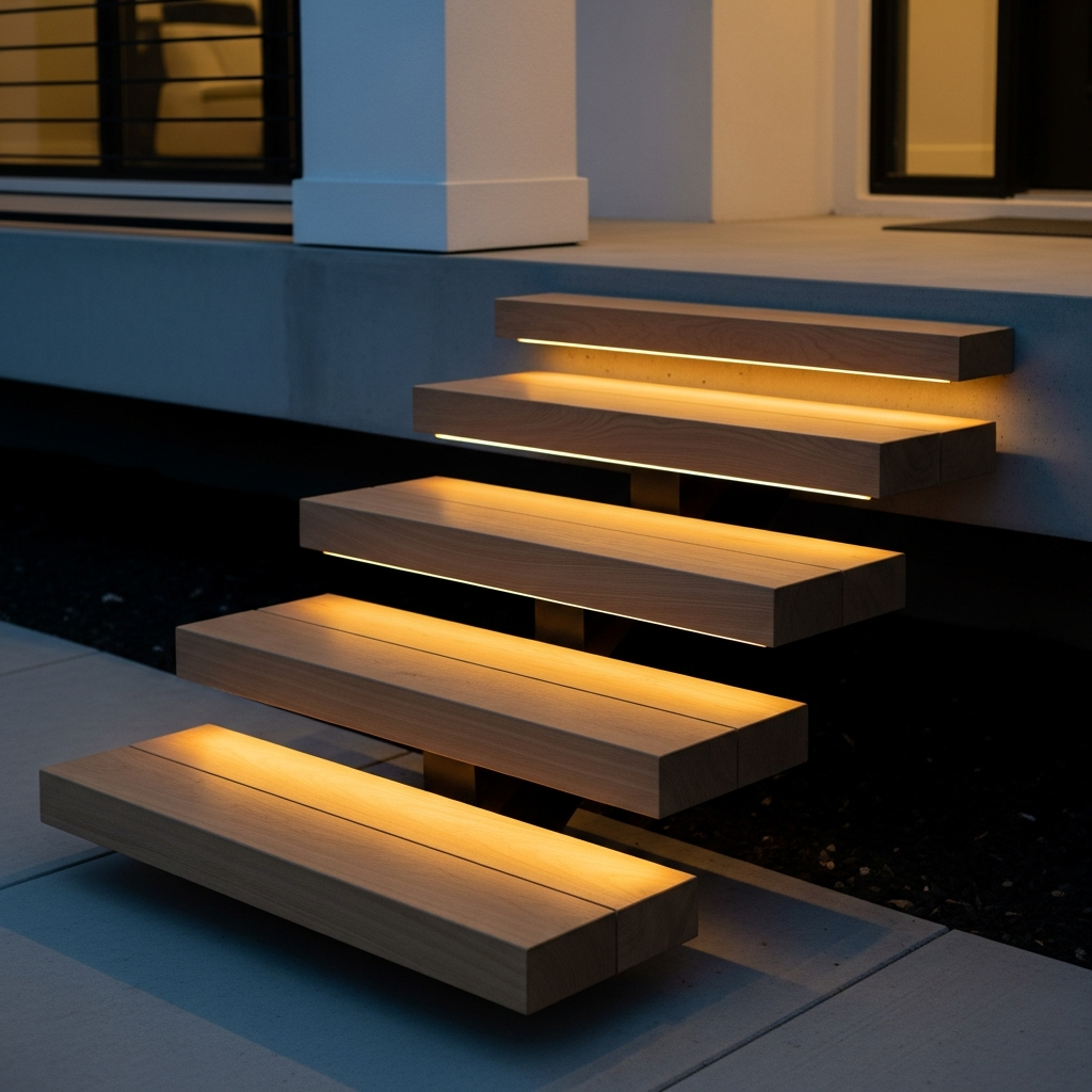 Floating stairs offer an architectural lightness that traditional steps lack. By using heavy timber or composite boards with hidden supports, you can create a staircase that looks like it is hovering. This style works exceptionally well for modern homes with varied elevations.
