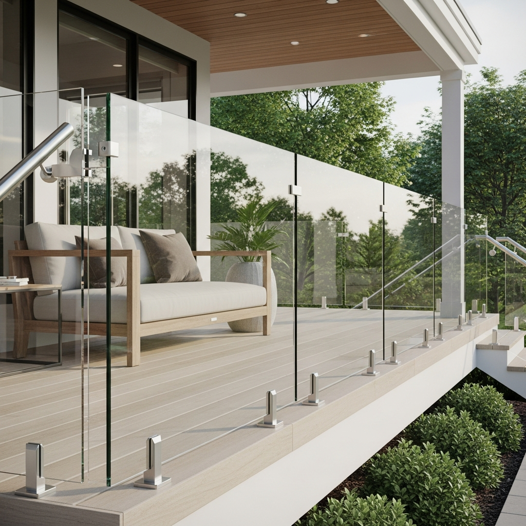 To maintain an open feel and provide an unobstructed view, glass railings are an excellent choice. Use tempered glass panels held by stainless steel or black powder-coated clips. This is especially effective if your porch overlooks a garden or a scenic landscape.
