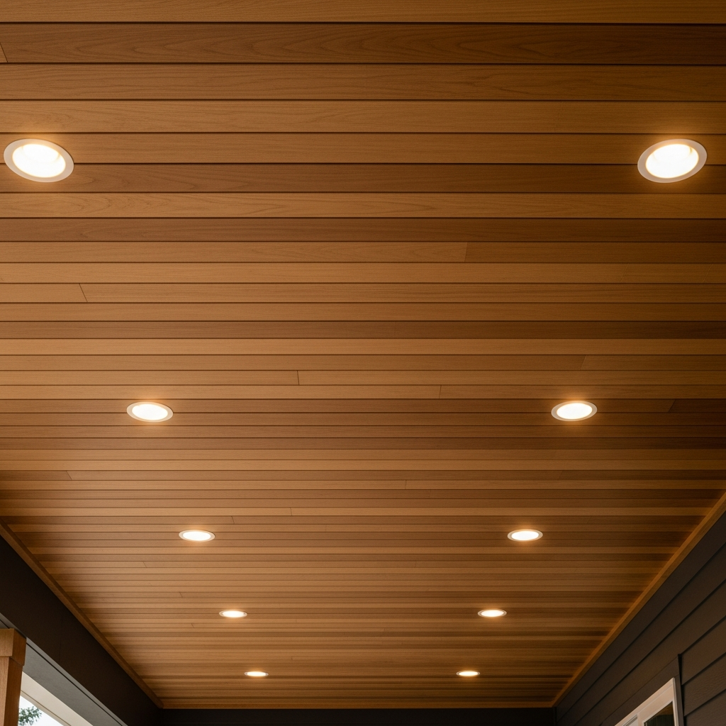 For a clean look, replace hanging lanterns with recessed LED pot lights in the porch ceiling. This provides even, soft lighting across the entire space without the visual clutter of hanging fixtures, maintaining a streamlined profile.