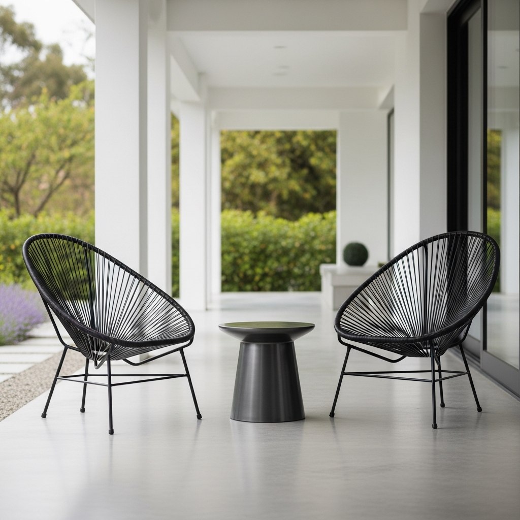 Furnish your porch with iconic mid-century modern pieces. Acapulco chairs or wire-frame seating offer a vintage yet contemporary vibe. Choose furniture with thin legs and open designs to keep the porch feeling spacious and airy.