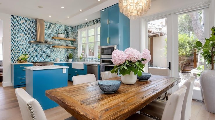 Soft mint, blush pink, or powder blue tones create a calm, cheerful kitchen atmosphere.
