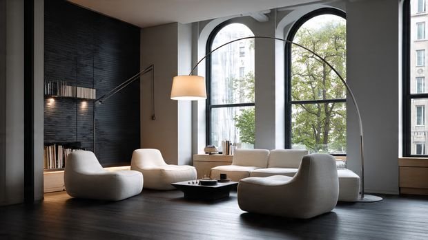 14. Oversized Floor Lamps + Deep Modular Sofas