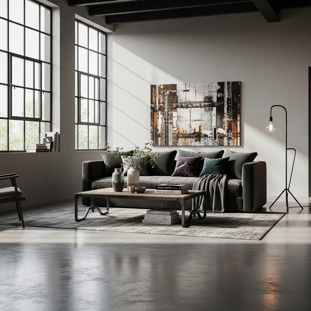 The industrial look has matured, moving away from raw roughness toward a more refined aesthetic. Think blackened steel frames, polished concrete floors, and exposed brickwork softened by high-end textiles and warm lighting.