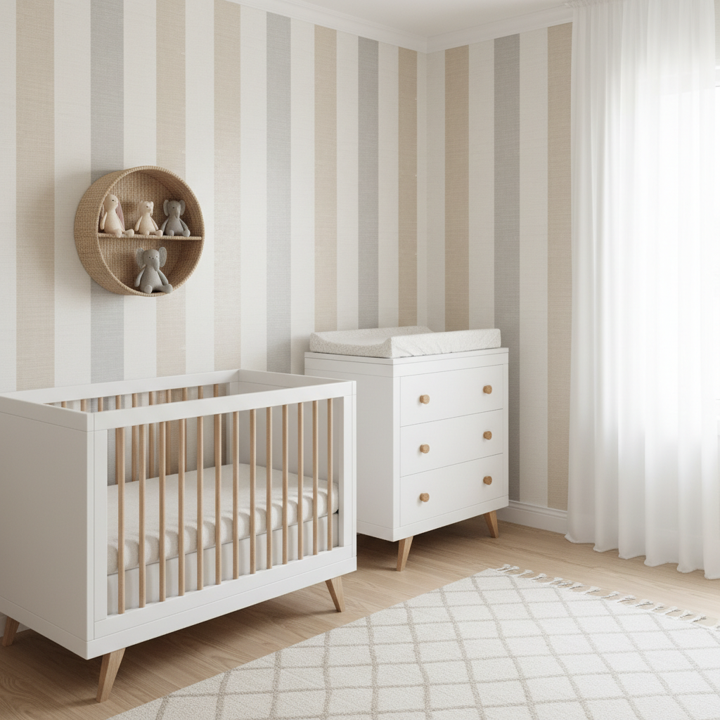 - Linen Drapery and Bedding: The relaxed, elegant drape of linen fabric adds a sophisticated yet laid-back feel. Choose natural linen shades for curtains, crib sheets, and changing pad covers to enhance the room’s softness.