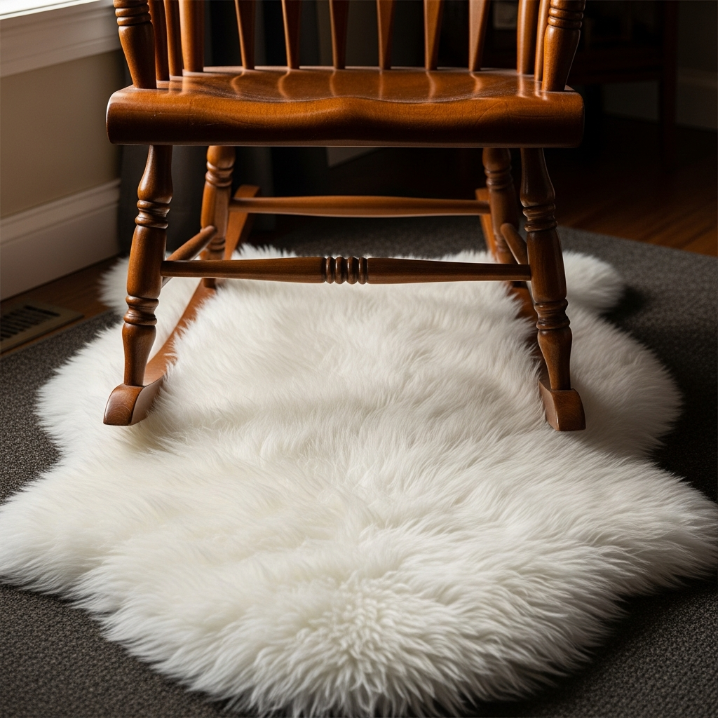 A faux sheepskin rug or chair drape adds instant coziness. The softness is perfect for tummy time or simply resting your feet during late-night feedings.