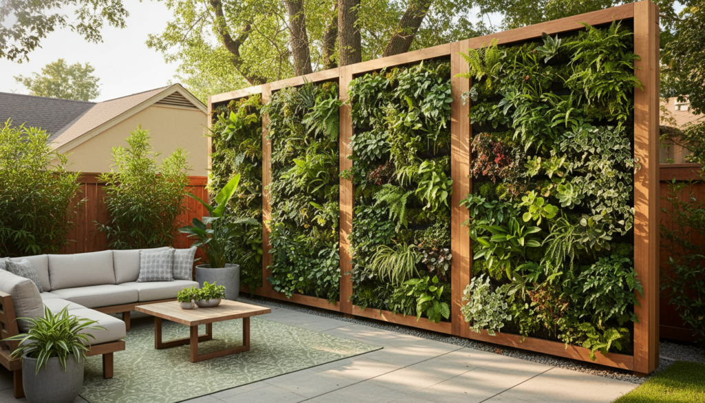 For a truly immersive natural screen, consider modular living wall panels. These vertical gardens can host a variety of plants, from succulents to ferns, creating a vibrant, ever-changing tapestry. The mood is modern and biophilic, bringing a burst of fresh green and diverse textures to any contemporary outdoor space.